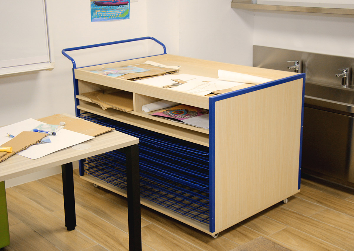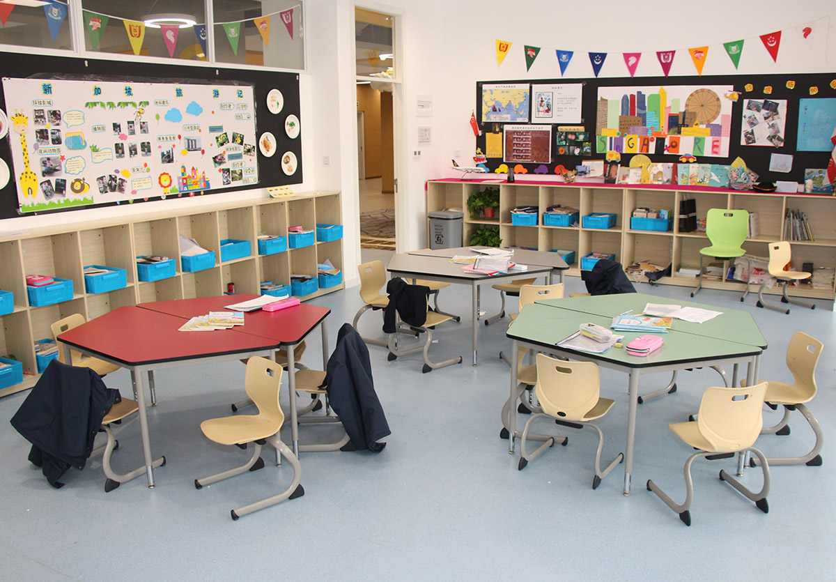改變傳統的教室分隔和整齊排列的桌椅,重新設計成靈活的、隨意的“開(kāi)放式教學(xué)空間”。